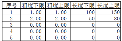 B、当粗度或长度数据是一个范围,在设定时可以不必关注大小数据的设定次序,也就是说大数据可以设定在下限,小数据可以设定在上限,如下图: