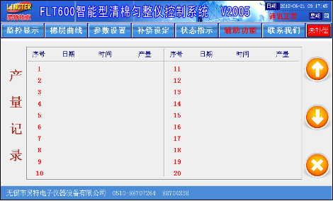 产量记录:点击该按钮后,进入到产量记录画面,如图12所示。每班的产量数据包含日期、时间和棉卷数量。