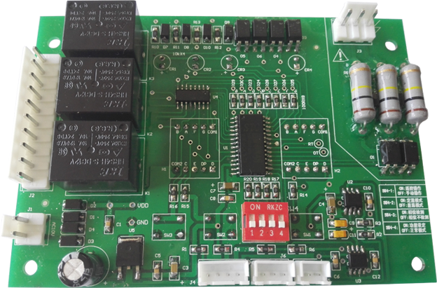 该主控板主要适用于工业油冷机、空调,是该系列产品的核心控制单元,具有控制功能强大、控制温度精确,保护功能齐全等优点。